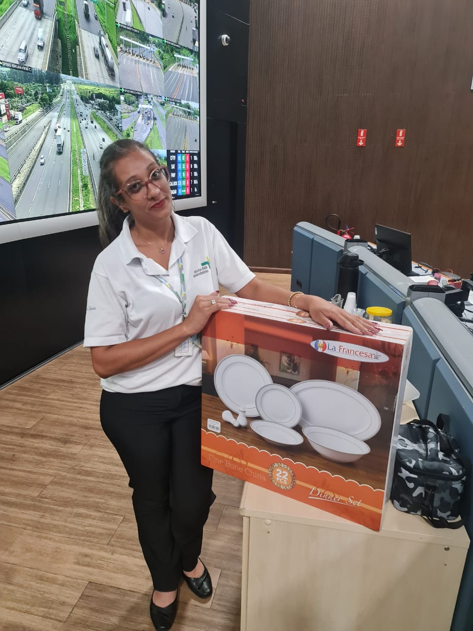 GANHADORA DO SORTEIO ESPECIAL DO DIA DO EMPREGADO EM CONCESSIONÁRIA DE RODOVIAS RECEBE SEU PRÊMIO